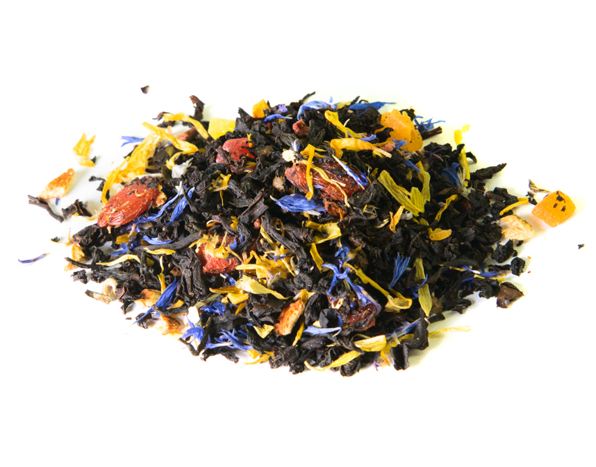Элитный черный чай / Ягоды годжи / Кусочки малины / Ананас / Цедра апельсина / Календула / Василек